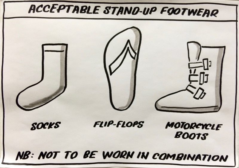 It was the height of summer, and at this time Patryk was riding to the office on his manly motorbike. If he was in the office well before the daily stand-up started he would attend wearing flip-flops. If he arrived in the office like 5 minutes beforehand, he would be wearing socks, having had the time to take off his motorcycle boots but not the socks underneath. And if he arrived at the stroke of 10am he would still be wearing his motorcycle boots, which looked weird.