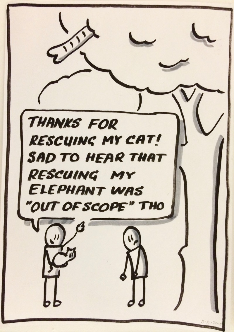 At this time I was an iOS developer. I knew Ruby, but also knew that I was out of my depth touching production Ruby code, especially having barely followed improvements to Ruby/Rails in the previous five years. There was a minor bug in the mobile API that the team responsible for it seemed unwilling to fix, so I took it upon myself to fix it for them. I created a fix, added some tests and submitted the pull request. The first comment was along the lines of “this is OK, but you should really have followed this pattern bla bla,” which firstly made me wonder why I’d even bothered helping that team out in the first place, and secondly would have led me into I-have-no-idea-what-I’m-doing territory, so I simply replied that any further refactor was out of scope.